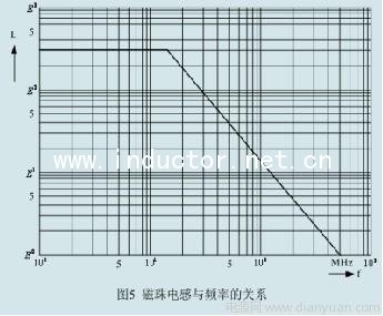 在低頻時,一般磁珠的相對導(dǎo)磁率都很大(大于100),但在高頻時其有效導(dǎo)磁率只有相對導(dǎo)磁率的幾分之一,甚至幾十分之一。因此,磁珠也有截止頻率 的問題,所謂截止頻率,就是使磁珠的有效導(dǎo)磁率下降到接近1時的工作頻率fc,此時磁珠已經(jīng)失去一個電感的作用。一般磁珠的截止頻率fc都在 30~300MHz之間,截止頻率的高低與磁珠的材料有關(guān),一般導(dǎo)磁率越高的磁芯材料,其截止頻率fc反而越低,因為低頻磁芯材料渦流損耗比較大。使用者在進行電路設(shè)計的時候,可要求磁芯材料的提供商提供磁芯工作頻率與有效導(dǎo)磁率的測試數(shù)據(jù),或穿心電感在不同工作頻率之下的曲線圖。圖5是穿心電感的頻率曲線圖。